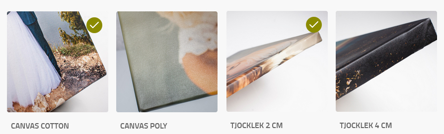 Beställ Canvas det finns två material och två grovlekar på spännramen.