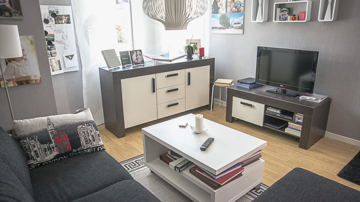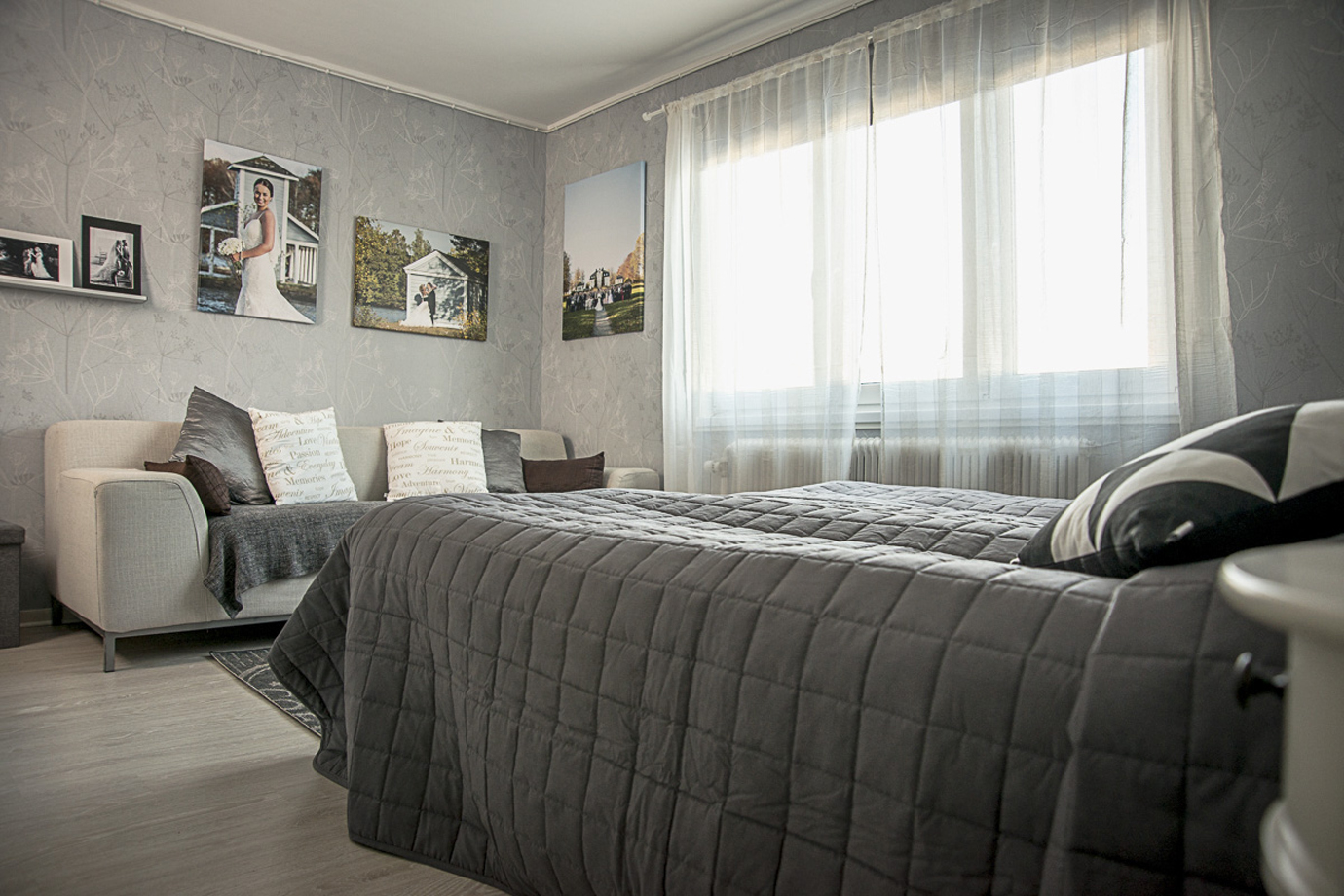 I rummet vi sitter är det en stor bekväm soffa som går görs om till säng.
